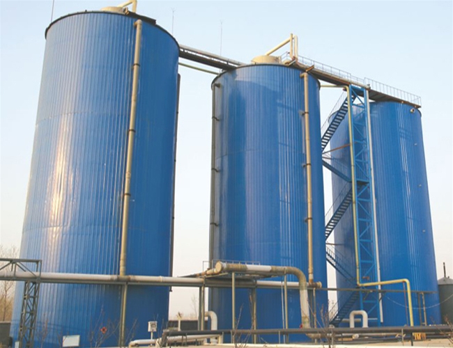 IC厌氧反应器是继UASB、EGSB之后的一种新型厌氧反应器。具有很高的容积负荷率,抗冲击负荷能力强,出水稳定性能好,产气量大,运行成本低,经济效益明显,更适合于中高浓度污水处理工程中。IC厌氧反应器通过上下两层集气罩把反应器分为上下两个室,两个室通过内循环装置组合在一起。进入IC厌氧反应器的有机物大部分在下反应室被消化,所产生的沼气被下层集气罩阻隔收集进入提升管,由于提升管内外液体存在密度差,促使发酵液不断被提升到气液分离器,分离沼气后又回流到下反应室,形成了发酵液的连续循环。